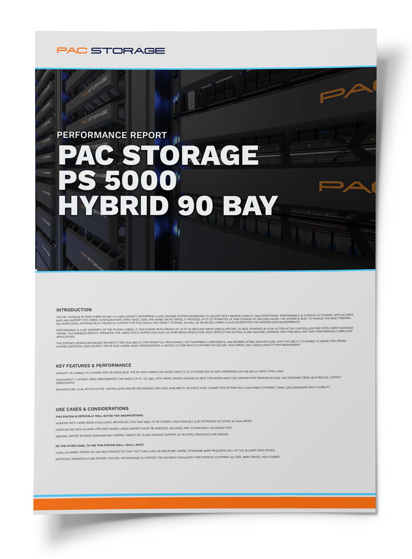 See how the PAC Storage PS 5000 Hybrid outperforms expectations. Download the full performance report to explore detailed benchmarks, real-world use cases, and insights on how this solution can maximize efficiency, boost speed, and transform your data infrastructure.